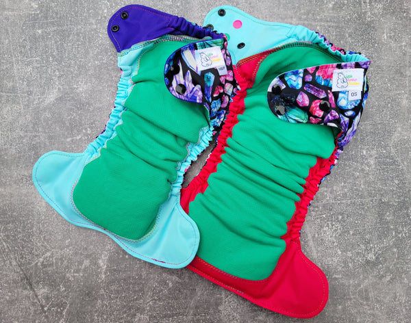 Key features: offers extra wetness protection with an inner PUL border around the legs and tummy.