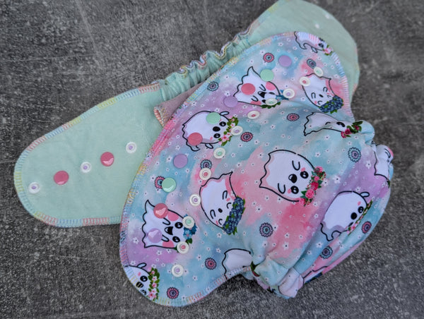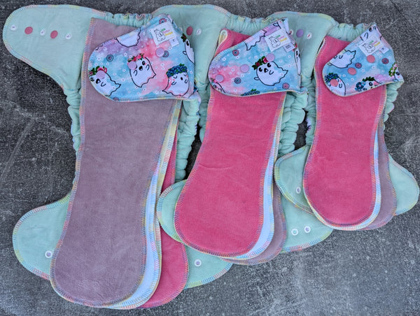 Cutie Ghost (Squish Hybrid Fitteds - cloth diapers - Velour inners - bamboo hemp fleece soakers - Windpro Hybrid )