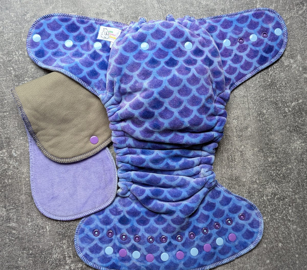 Mermaid scales handdyed OBV | OneSize Hybrid Fitted | cloth diapers | Fitted diaper