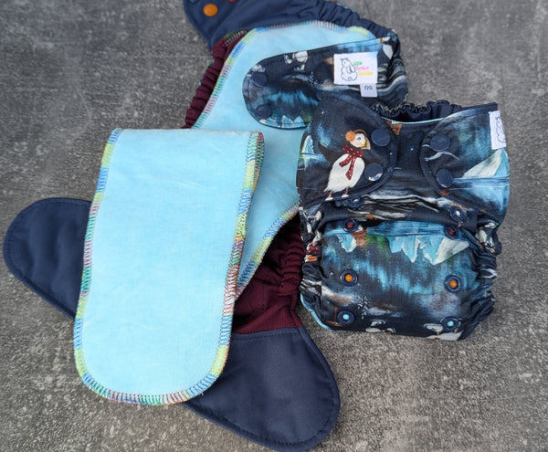 The LBB Pocket All in Three (Ai3 cloth diaper) - With 3,900 or more GSM these are great for heavy wetters! They offer extra wetness protection with an inner PUL border around the legs.