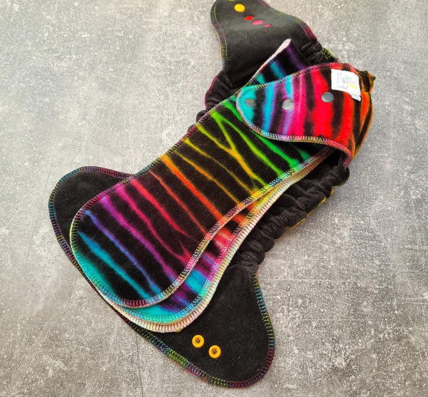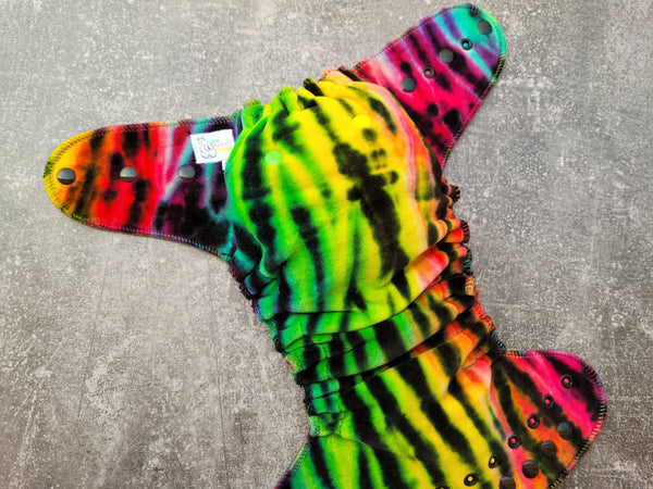 Great breathability for sensitive skin! Many use these diapers for overnights with a cover (fleece, wool, or PUL) Depending on the wetter it can be worn with out a cover for about 2 hours.