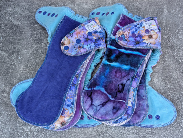 Great breathability for sensitive skin! Many use these diapers for overnights with a cover (fleece, wool, or PUL) Depending on the wetter it can be worn with out a cover for about 2 hours.