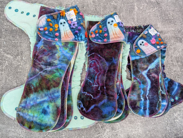 Great breathability for sensitive skin! Many use these diapers for overnights with a cover (fleece, wool, or PUL) Depending on the wetter it can be worn with out a cover for about 2 hours.